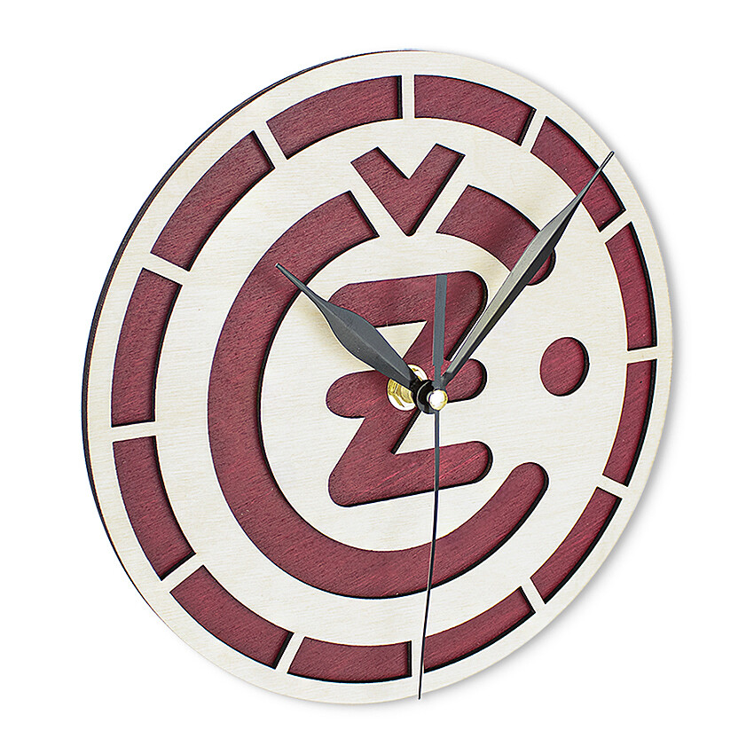 Nagyon szép falióra, anyaga 6 mm-es rétegelt lemez, az óra két lézerrel vágott részből áll, az alsó rész lakkozott, így a logó szépen kiemelkedik.