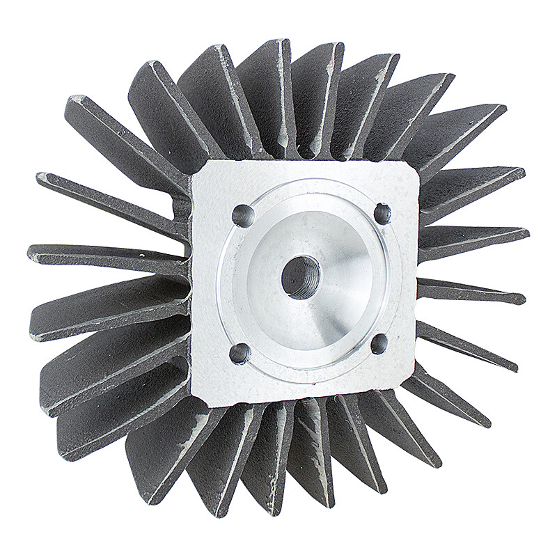Tuning hengerfej ventilátorbordákkal, D38 mm furatú Pionýr motorokhoz tervezve. A kopogásgátló nyílással és a középen elhelyezett gyújtógyertyával ellátott kialakítás maximalizálja a teljesítményt. 19 mm menethosszúságú és megfelelő hőértékű (pl. Brisk L15C vagy NGK B7ES) gyújtógyertya használata ajánlott. A fej homoköntvényből készült, ami érdes felületi szerkezetet eredményez.