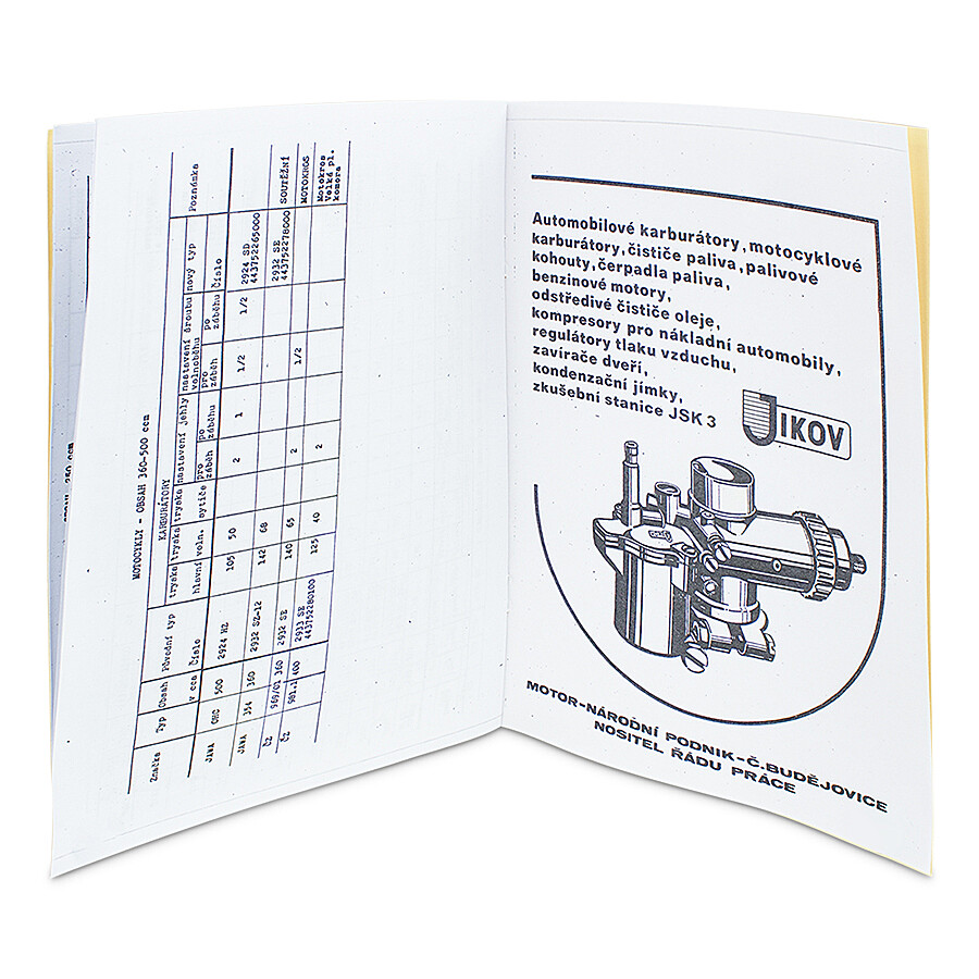 A Jikov motorkerékpár karburátorbeállító táblázatai egy katalógus , amely pontos információkat tartalmaz a helyes karburátorbeállításokról. Segítenek meghatározni a fúvókák méretét, a tűpozíciókat és az alapjárati beállítást .