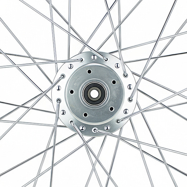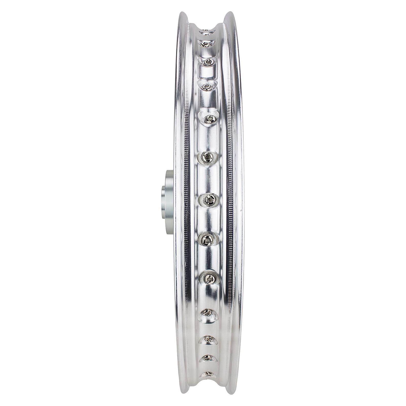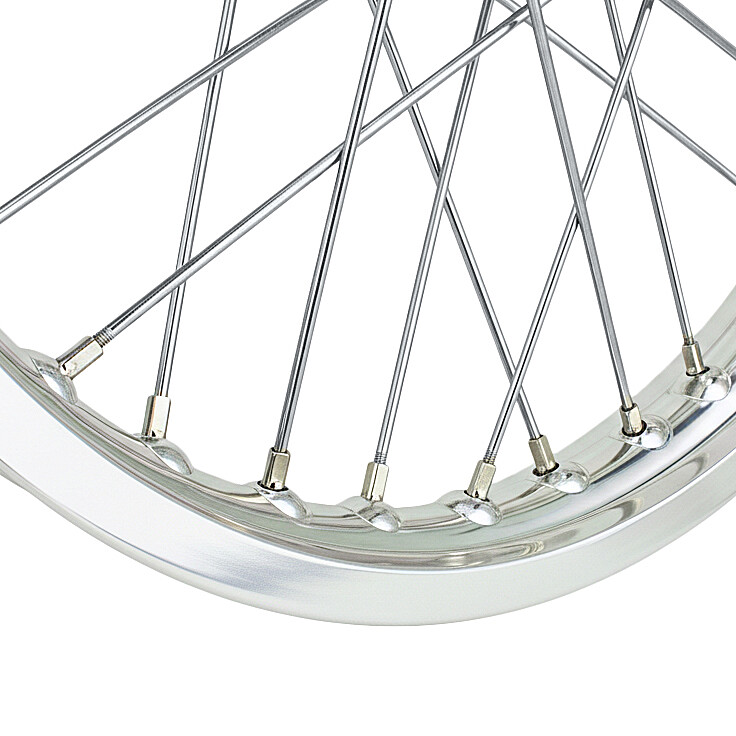 Komplett első kerék alumínium felnivel és króm küllőkkel, Simson motorkerékpárok tárcsafékrendszereihez tervezve. A kerék kompatibilis a tárcsafék-készlettel ( SIM24528135 ), ha az eredeti első teleszkópvillákba vagy a modern csillapítású első villakészletbe ( SIM65980243 ) szerelik.
