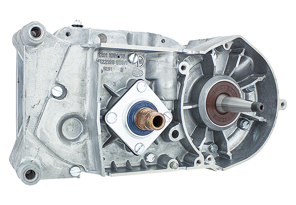 A sugár be van hajtva, a főtengely és a sebességváltó fel van szerelve és mozgáskorlátozott, valamint az olajtömítések be vannak szerelve.
